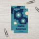 Tarjeta De Visita Modern Teal Blue Retro Floral Pattern with QR Code