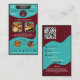 Tarjeta De Visita Modern Teal Burgundy Bakery Logo and QR Code