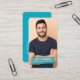 Tarjeta De Visita Modern Teal Photo QR Code Connect With Me