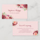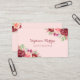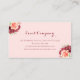 Esta tarjeta de visita presenta un moderno diseño floral acuático con rosas de color burdeos y melocotón, flores y follaje sobre un fondo rosa de color rosa. Personalízalo con tu propio texto.