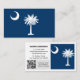 Tarjetas de visita: moderna tarjeta de visita de Carolina del Sur con bandera de Carolina del Sur por un lado y tus detalles junto con escandaloso código QR, pequeña bandera de Carolina del Sur por el otro lado. Enlace personalizar sencillo en el código QR para tu sitio web o número de móvil, personaliza el nombre, los detalles de la dirección o cambia la bandera del lado del logotipo de tu empresa, la foto personal o cualquier otra imagen. Hacerlo su negocio o sólo tarjeta para mudarse de casa.