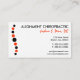 Estas tarjetas de visita modernas de la quiropráctica ofrecen puntos anaranjados y negros en los diversos tamaños alineados para parecer una espina dorsal lateral.