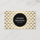 Un patrón geométrico de formas doradas y blancas da la ilusión de un prisma en este diseño moderno de tarjetas de visita. Elegantemente diseñado para profesionales creativos. © 1201AM CREATIVE