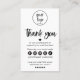 Un negocio elegante, moderno y de moda gracias por su tarjeta de pedido. Los iconos de los medios sociales se pueden borrar o mover haciendo clic en "personalizar más" mientras se personalizan. Simple y moderno con un tipo de letra de guión. Cambie el color de los corazones y las estrellas y los íconos de los medios sociales si lo desea.