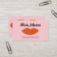 Perfecta tarjeta de negocios de diseño minimalista y de moda para maquillador, salón de belleza, pintor de uñas, esteticista, etc. Con ilustracion de labios rojos extravagantes sobre un fondo estético pastel. Tarjetas de visita profesionales para hombres y mujeres. Belleza, uñas, esteticista estético makeuo tarjeta de negocios de moda abstracta rosada.