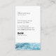 Tarjetas de visita de moda con marea azul oceánica, y tu nombre o compañía. Añade la información de contacto completa a la parte posterior. Una elección única y sofisticada para cualquier negocio. Agregue la redacción de su personalizado a este diseño utilizando los cuadros "Editar esta plantilla de diseño" situados en la parte derecha del elemento, o haga clic en el botón azul "Personalizar" para organizar el texto, cambiar los tipos de letra y los colores y añadir información o imágenes adicionales a este diseño. Si necesita algún elemento de coordinación, (gracias a las tarjetas, etc.) por favor contáctame para un pedido de personalizado. ****Por orden de personalizado, no coloque esta mercancía en su carrito. En su lugar, envíeme su solicitud por correo electrónico a lauraliseprovencher@gmail.com Una vez que el artículo esté disponible, se le enviará por correo electrónico un enlace a su mercancía. Puede usar ese enlace para realizar su pedido. Por favor, espere hasta 48 horas.