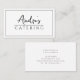 Tarjeta de presentación culinaria con nombre de guión moderno con tipo de color en negro.