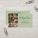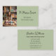 Una tarjeta de visita moderna de color verde sabio con marco fotográfico. Perfecto para una tienda que fabrica y vende productos naturales hechos a mano como jabones y velas.