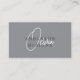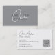 Este sofisticado y elegante diseño de tarjetas de visita presenta una moderna combinación de colores gris y blanco con una elegante combinación de tipografía de sif y script. La parte frontal muestra una característica disposición de texto superpuesta, donde el audaz nombre comercial en mayúsculas se complementa con un acento manuscrito que fluye, creando un aspecto refinado y artístico. La parte posterior mantiene un diseño limpio y profesional con detalles de contacto esenciales, un código QR para el acceso digital instantáneo e iconos de medios sociales para un toque contemporáneo. Perfecto para emprendedores, diseñadores y profesionales creativos, este diseño de personalizable exuda elegancia y profesionalismo, haciendo una impresión duradera.
