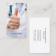 Diseño moderno de tarjetas de visita con una foto profesional de un médica con gesto de aprobación hacia arriba. Perfecto para ocupaciones relacionadas con la salud, médicas familiares.