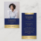 Un diseño moderno, sencillo y elegante con un fondo azul marino y una banda dorada. Esta tarjeta de visita fotográfica es perfecta para agentes inmobiliarios, estilistas del hogar, gerentes de propiedades, inmobiliarios y otros en las industrias de administración de propiedades. También para profesionales de finanzas, profesionales médicos y CEO, CFO o gerentes de cualquier industria.