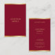 Moderna y elegante Burgundy Red & Gold Simple Plantilla profesional de moda Euro / European Size Vertical Business Card. Perfecto para Consultores, Propietarios de Salón de Belleza, Artistas de Maquillaje, Diseñadores, Músicos, Profesionales Empresariales, Agentes Inmobiliarios, Contadores, Realtors, Brokers, Abogados, Médicos, Directores, Gerentes, Estilistas de Cabello, Arquitectos, Ingenieros, todas las profesiones.