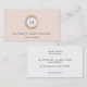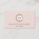 Sofisticada y glamurosa, esta tarjeta de visita de inspiración retro es perfecta para los profesionales del entretenimiento, ya sea estilista de moda o maquillador independiente. Imagen digital del emblema del círculo enmarcado de la secuencia de oro sobre fondo rosa de color. No hay brillo ni textura en esta tarjeta.