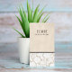 Diseño moderno de tarjetas de visita de personalizable completo con fondo de pintura beige y encaje blanco de textura. Diseño elegante y moderno. Perfecto para decoradores, diseñadores de eventos, decoradores y más.