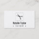 Haga una impresión con los clientes con esta tarjeta de visita moderna, lisa y minimalista en blanco y negro intemporal. Hace que un icono de una silueta de un par de scissor. Grande para los profesionales del corte del pelo tenga gusto de los peluqueros, de los estilistas y de los salones de pelo. El fondo se puede cambiar al color de la opción usando modo del arreglo para requisitos particulares.