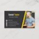 Esta moderna, elegante y fresca tarjeta de visita utiliza una paleta de colores de negro, blanco y amarillo. El blanco y el negro lo hacen profesional y atemporal mientras que los toques de amarillo le dan un sentido de energía y positividad que es muy necesario para la formación de fitness. El fondo negro tiene una textura sutilmente resistente. Perfecto para entrenadores personales independientes, instructores de fitness y cualquier persona del sector de fitness que desee comunicar estas cualidades a sus clientes. Añade tu foto para dar credibilidad y conexión personal con clientes potenciales.