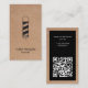 Tarjeta De Visita Moderno Faux Kraft Black QR Code Barber Pole Salon