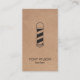 Elegante plantilla de tarjeta de negocios totalmente personalizable con fondo de papel kraft IMPRESO, clavija negro de barberas. Diseño moderno y elegante para el salón de barbacoa.