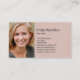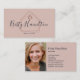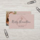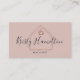 Elegante y profesional agencia inmobiliaria tarjeta de visita con una foto en la parte trasera. Logotipo moderno de realtor en el frente con letra de guión en azul marino y fondo en color rosa rubor.