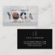 Una moderna tarjeta de negocios con gimnasio de yoga, perfecta para instructores de yoga y empresas de bienestar de yoga. El diseño presenta un diseño fotográfico completo para mostrar su propia foto. Diseño de overlay blanco con la palabra "YOGA" revela la foto en las cartas. El resto de la foto se ilumina en el fondo. Personalizar con su nombre comercial. El reverso muestra información de contacto, nombre y monograma de personalizado en un diseño minimalista y elegante. Diseñado Por Moodthology Papery.