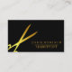 Esta es una moderna tijera de oro o tarjeta de visita para un peluquero. Se trata de una elegante y moderna plantilla de tarjetas de visita con un falso patrón de tijera de oro. Esta es la tarjeta de visita perfecta para estilistas de cabello, peluquerías.