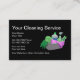 Tarjetas de la empresa de servicios de la limpieza en un diseño moderno que incluye una imagen gráfica de las fuentes y del texto de una limpieza diseñados para ser modificado para requisitos particulares con su información del negocio y del contrato. Creado para un ama de casa, una criada, o los servicios de la limpieza de la oficina.