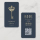 Presentamos la moderna tarjeta de visita Realtor Real Estate Monogram Dark Blue. Destacar en el abarrotado mercado inmobiliario con esta elegante tarjeta de visita que presenta un diseño de clave oro vintage y un código QR que enlaza directamente a su sitio web, listados de propiedades o tour virtual. Como consultor de agentes inmobiliarios, usted sabe que la clave del éxito es hacer una impresión duradera con los clientes potenciales. Esta tarjeta de visita única hace justamente eso, transmitiendo un sentido de pericia y sofisticación que lo diferencia de la competencia. Siéntase libre de personalizar todo el texto, la foto y el logotipo, y envíeme un mensaje si necesita una mayor personalización