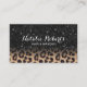 Tarjeta De Visita Moderno salón de belleza Leopard Purpurina negro
