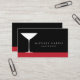Perfil moderno, sencillo pero elegante o tarjeta de visita para los barman. El diseño presenta una silueta blanca de cristal de cóctel martini sobre un fondo negro y rojo. Nombre y título del Personalizable en la parte delantera e información de contacto en la parte posterior. Diseño elegante para hombres y mujeres. Otros colores disponibles bajo petición. Para solicitudes de personalizado, por favor use el enlace de contacto de tienda arriba.