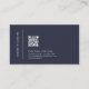 Elegante y moderna plantilla de tarjeta de visita mínima con código QR. El fondo azul oscuro es clásico y no muy concurrido. Esta moderna plantilla de tarjeta de visita es fácil de personalizar, simplemente agregue su propio logotipo y código QR comercial. Cree y agregue su propio código QR único para dirigir fácilmente clientes a su sitio web. Es un aspecto profesional y elegante para elevar tu marca.