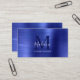 Tarjeta de presentación profesional moderna con monograma metálico azul metálico cepillado
