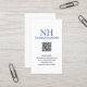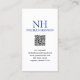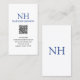 Modernas tarjetas comerciales QR Code con un diseño sencillo y mínimo en azul y blanco con tu monograma en negrita junto con tu nombre en la parte superior. Debajo está tu información de contacto.