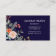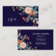 Un aerosol colorido de flores botánicas gráficas adorna esta tarjeta de visita y puede ser personalizado con tres iniciales del monograma en el frente. El fondo es un azul marino rico y el lado opuesto lleva a cabo toda su información de contacto.