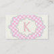 Tarjeta De Visita Monograma con gingham rosa y blanca