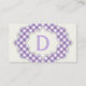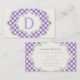 Monograma en un marco y tarjetas de visita para la captura de ojos con un patrón paisley blanco púrpura, con su monograma en un marco elegante y elegante de marfil con contorno gris. Hay otro cuadro debajo de él con un patrón de lavanda morado, blanco. Este diseño elegante y señorial es moderno con un toque retro/vintage. El tipo de letra parisino se utiliza para el texto. Es completamente personalizable y puede personalizar y agregar su texto, nombre o iniciales. Puede cambiar el color de fondo - morado - eligiendo en la gráfica de color Zazzle. Este sofisticado diseño personalizado de tarjetas de visita es perfecto para uso personal o profesional.
