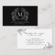 Monograma moderno Escudo floral blanco y negro Monograma tarjeta de visita