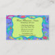 Cree una tarjeta de visita elegante y dramática para captar la atención de sus clientes. Esta tarjeta de visita presenta un diseño paisajista brillante que aparece en un fondo de lavanda peringuible y un área verde lima en el frente para personalizarla con su monograma o iniciales. Si sólo desea el diseño paisley en la parte delantera de la tarjeta, puede borrar la tira y el texto. Un área verde lima está en la parte posterior del patrón paisley y se puede personalizar con toda la información de contacto de su empresa. Los colores vivos de este moderno diseño paisajista se combinan con paisajes luminosos, frescos y modernos para hacer un hermoso diseño artístico que incluye palabras inspiradoras de Amor, Esperanza, Fe, Inspire, Corrismo, Be Happy, Dream y Live en el fondo entre paisleys. Esta colección de Mod Paisley, diseñada por Phyllis Dobbs, utiliza los colores verde azulados, turquesa, verde limón, lavanda, amarillo, rosa fucsia y naranja para crear una diversión y capricho sobre el tradicional y popular motivo paisley. El motivo paisley es intemporal, pero este arte original es a la vez moderno y contemporáneo. Personalizable completo para la personalización con sus propias palabras para añadir su propio mensaje si desea utilizarlo para otros usos además de los negocios. Phyllis también puede personalizar otros productos para su tienda sólo contactándola o ayudándole si tiene dificultades con la personalización. Todo el arte utilizado está protegido por los derechos de autor de Phyllis Dobbs Art & Design.