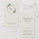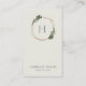 Las tarjetas de visita verticales modernas con tu monograma dentro de un marco geométrico dorado rodeado de vegetación y flores blancas en la parte superior y tu nombre y título en la parte inferior. El reverso tiene su información de contacto. Un diseño botánico elegante que es ideal para un peluquero, maquillador o alguien en la industria de la belleza. Fotograma cortesía de:<a href="http://www.freepik.com">Diseñado por Freepik</a>