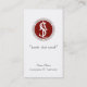 Tarjetas de visita de intérprete o instructor de lenguaje de signos americano. Monograma rojo redondo y eslogan "manos que hablan".