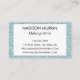 Esta tarjeta de moda, girly y glam tiene un purpurina plateado azul claro brillante fondo en ambos lados. En la parte delantera de la tarjeta de visita está tu nombre en un elegante guión negro con un gran monograma inicial en blanco detrás. Luego al dorso está tu nombre, título de trabajo y detalles de contacto con un fondo blanco. Personalice fácilmente esta tarjeta de visita. Haga clic en "personalizar más adelante" para cambiar el color del texto, el estilo y el tamaño del tipo de letra. Esta tarjeta de visita es perfecta para un artista de maquillaje, peluquero, asesor de belleza, planificador de eventos o propietario de un salón.