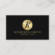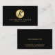 Diseño elegante, moderno y elegante, en negro y dorado, con un monograma de escritura negra en un elemento de círculo dorado con información empresarial en un estilo de fuente profesional dorado sobre fondo negro. Perfecto para un artista de maquillaje, diseñador, estilista, consultor, inmobiliario y muchas otras profesiones. Nota: Los detalles del Relieve metalizado se simularán en la obra de arte. Este producto no contará con ningún relieve ni capa que creen un efecto metalizado.