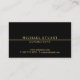 Un elegante diseño de lujo negro y dorado con monograma en estilo profesional de fuente dorado con borde dorado en el frente e información de negocios con estilo de fuente profesional de oro en el reverso.