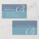 Tarjeta De Visita Monograma elegante verde azulado B de dos tonos