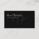 Su nombre e iniciales impresos en un estilo de letra manuscrito, con información de profesión y contacto adicional en una elegante tarjeta de visita negra