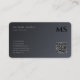 Moderno y elegante diseño simple Personalizado de texto Monograma Plantilla de código QR inicial Color negro / gris oscuro Firma Matte RoundCorner tarjetas de negocios. Perfecto para Agentes Inmobiliarios, Contables, Realtors, Brokers, Abogados, Médicos, Profesionales Corporativos, Estilistas, Arquitectos, Ingenieros, Directores, Gerentes, Consultores, Diseñadores, Maestros, Músicos, todas las profesiones.