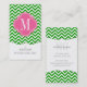 Tarjeta De Visita Monograma personalizado zigzag verde oscuro de
