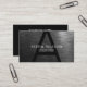 Tarjeta de visita con Monograma Grande Delgado Sans-Serif Inicial sobre una imagen de fondo de color negro y gris de apariencia metalizado es profesional, elegante y sobrio con una estética simple y llana. Esta tarjeta de personalizable es perfecta para un Contador, Consultor, Abogado, Abogado o Abogado, Realtor o Agentes Inmobiliarios y Broker, o Inversor.