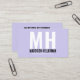 Tarjeta De Negocios Girly Simple Moderno Monograma Púrpura. Una simple tarjeta de visita minimalista para marcas corporativas, pequeñas empresas o individuos como consultores, autónomos y otros profesionales! En este momento es un colorido violeta, negro y blanco, pero puedes cambiar cualquiera de los colores a lo que quieras. Tipografía audaz moderna que es profesional pero audaz y elegante. Las iniciales del monograma en la parte delantera y la información de contacto en la parte posterior.