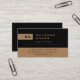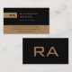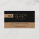 Tarjeta profesional, moderna, simple y minimalista con iniciales monogramadas en el cuadrado izquierdo, nombre completo seguido de carrera y detalles completos en abajo y negro liso con monograma marrón en la parte posterior.