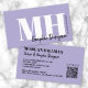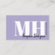 Lavender Purple Profesional Simple Monograma Moderno Tarjeta de Negocios. Puedes cambiarlo a cualquier negocio que quieras: maquillador, especialista en latigazos, peluquero, o incluso algo como marketing, consultoría y más! Presenta un fondo malva lavanda en ambos lados con una mezcla de fuentes en blanco y negro en tipografía clásica y audaz acompañada de un elegante tipo de letra para los detalles. El reverso incluye espacio para un código QR para que los clientes puedan conectarse rápidamente a su sitio web, con los iconos de los medios sociales mostrados encima de él, puede eliminar cualquier icono que no desee mantener limpio y personalizado. Un aspecto de moda y moda, profesional y elegante. Puede cambiar todos los colores para hacerlo como desee. El nombre lateral de la parte delantera debe funcionar con la mayoría de las iniciales, pero si no, puede querer jugar con el espaciado en el editor completo.